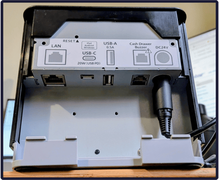 You’ll notice on the back of your printer that there are up to three USB ports, which can be either USB-A or USB-C. The port used to connect your device to Dines is identified by an “iPad” label.
